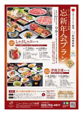 - 送迎:夜宴 片道60分以内 昼宴 片道90分以内(長岡まで)は送迎致します。